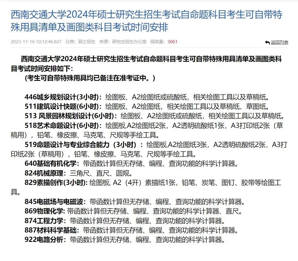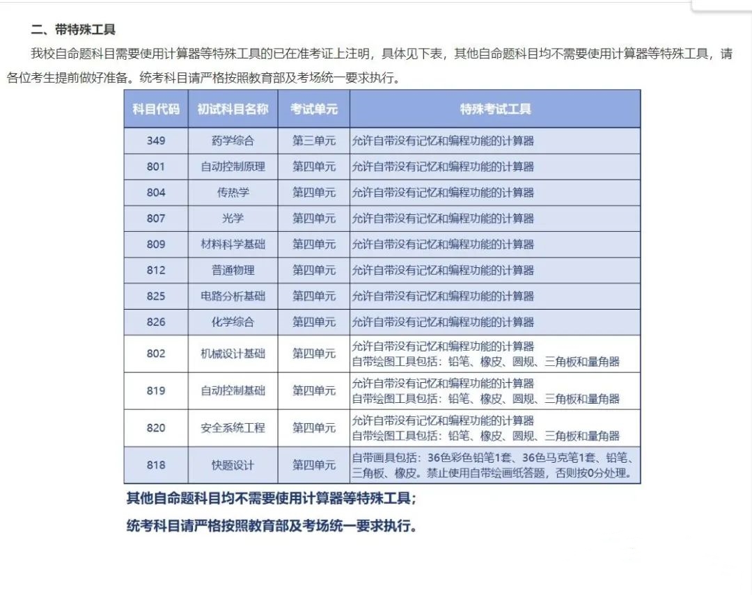 以上只是常见的考场用具,部分自命题考试科目会有其他特殊用具,大家可查看院校公告的明确要求。