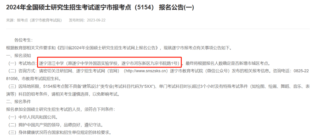 考试地点:遂宁涪江中学(原遂宁中学外国语实验学校,遂宁市河东新区九宗书院路1号)