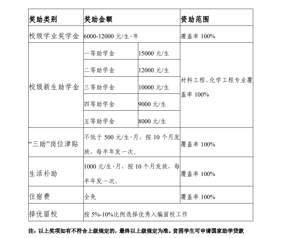 学校对全日制非定向就业及全日制定向非在职少高计划硕士研究生设有“助研岗位奖学金”,覆盖面100%。