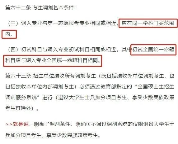 今年调剂的变动来自《研招规定》第九章、第六十二条